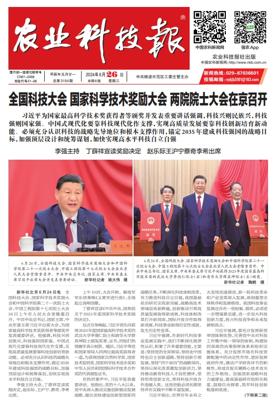 2024年12月16日、3月13日、4月23日《农业科技报》刊发科技报道