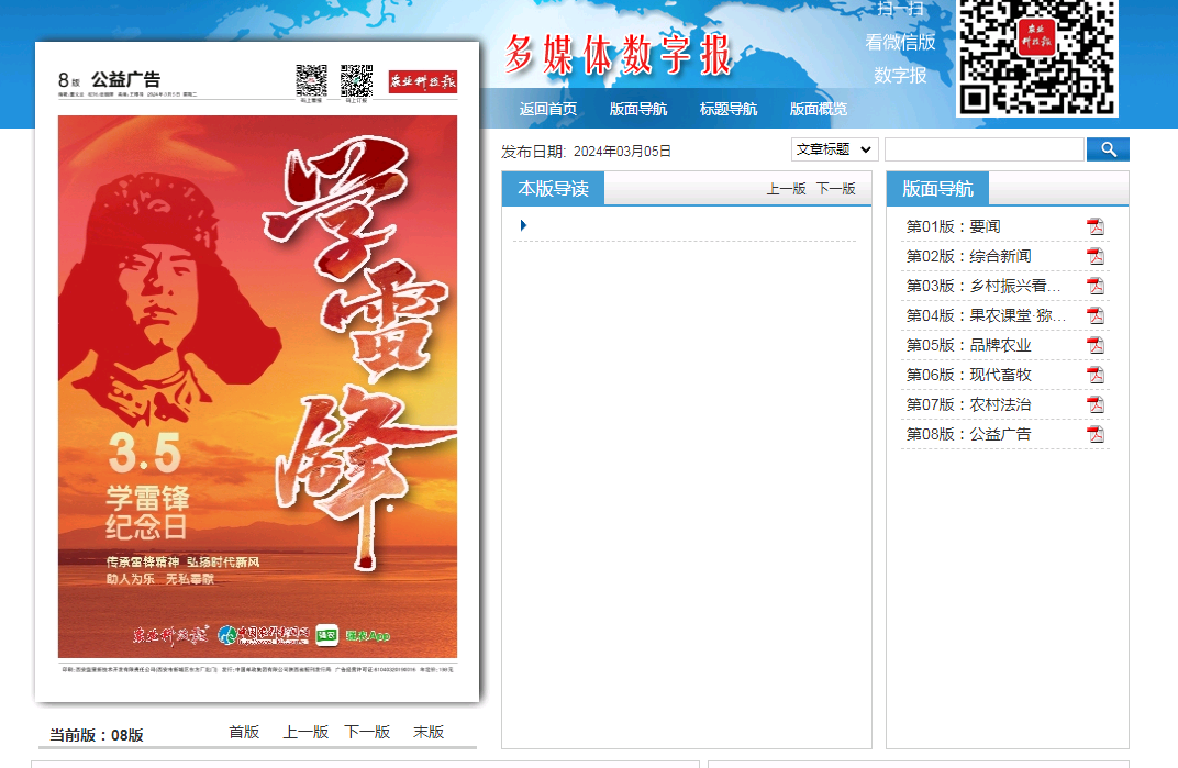 《农业科技报》3月5日刊发“学雷锋”公益广告