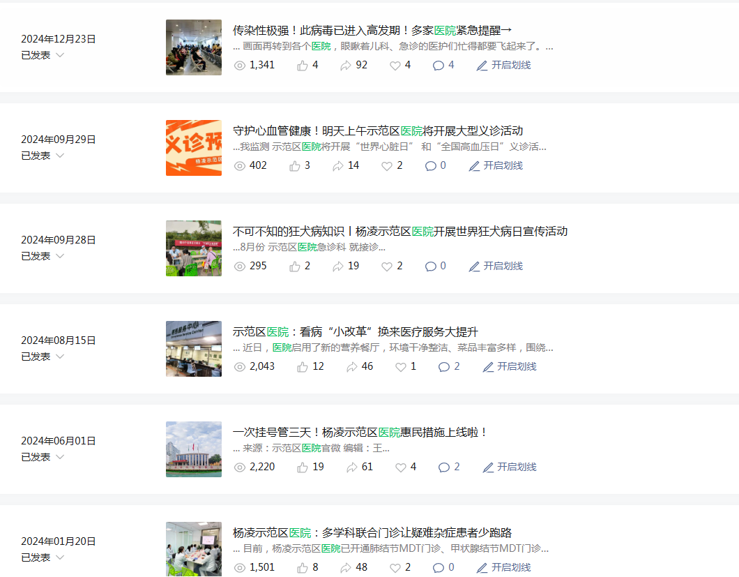 集团认真践行媒体担当和社会责任,依托《杨凌视线》栏目,开设“热点关注”“直击现场”“种下梦想 爱上杨凌”等专栏,解决了高干渠路和后稷路交界处井盖凸出、城区道路占道经营、部分小区存在消防隐患等问题,又弘扬了“男童高烧抽搐 杨凌交警急速送医”等社会正能量,全年推送刊发涉及民生类稿件100余篇(条)。同时,通过微信公众号、客户端、网站、视频号等新媒体平台,推出重磅报道和爆点视频,提升民生新闻的报道质量。