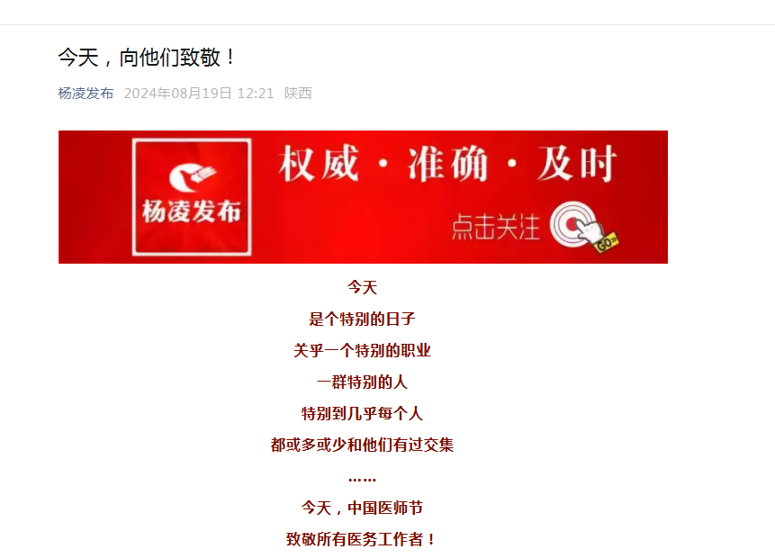 2024年8月19日,杨凌发布推出《今天,向他们致敬!》报道