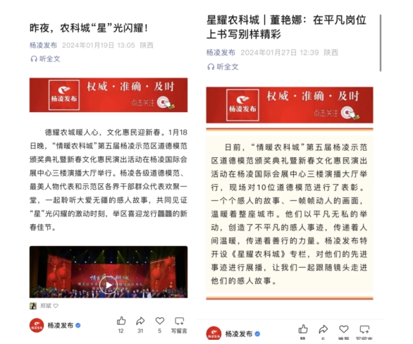 2024年1月19日、1月27日杨凌发布刊发道德模范相关报道