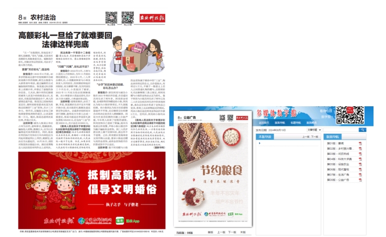 2024年5月9日、8月19日、《农业科技报》刊发社会主义核心价值观相关报道