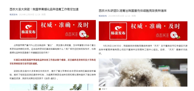 2024年9月30日、12月9日杨凌发布刊发科技报道
